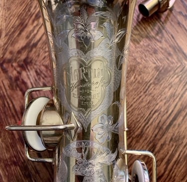 Buescher True Tone IV vm. 1930 (kullattu, erittäin harvinainen malli, varhaisen radion lapsitähden omistuksessa ollut soitin) hinta 2450 €