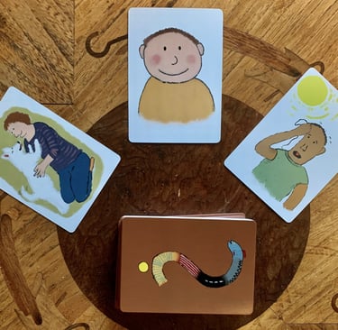 Yhdessä pakassa on 52 korttia, joissa on esineisiin, toimintoihin, tunneilmaisuun ja fyysisiin tuntemuksiin liittyviä kuvia. Ennen pelin alkua pelin ohjaaja päättää pelataanko koko pakalla vai tietyillä pakasta valituilla korteilla. Näin hän voi huomioida käytettävissä olevan ajan sekä pelaajan taitotason ja keskittymiskyvyn. Esitysvuorossa oleva pelaaja valitsee kortin ja esittää ilman sanoja kortissa kuvatun asian. Arvausvuorossa oleva pelaaja yrittää arvata mitä esitysvuorossa oleva pelaaja esittää.